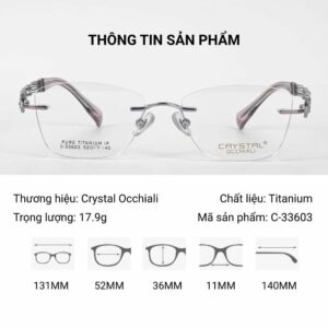 Crystal C-33603 – Kính Không Gọng Mắt Mèo Titanium