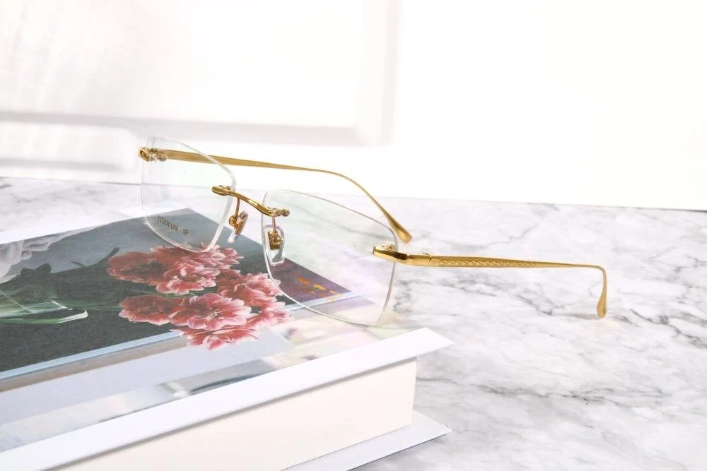 DOX D13173 Gọng Kính Khoan Không Viền Titanium Mạ Vàng 18K Chính Hãng 100%