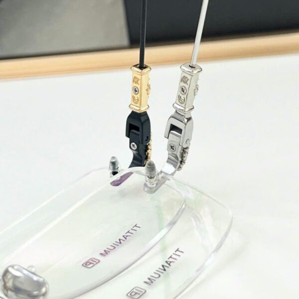 Mẫu này cực kỳ “dễ tính” trong việc cắt tròng: độ cận, viễn, loạn, cắt màu, cắt phai màu, tròng đổi màu… đều đẹp lung linh nhờ form không gọng và titanium sáng bóng. Đây là một trong những mẫu hiếm hoi mà thợ kính nào cũng khen “cắt tròng gì cũng hợp”.