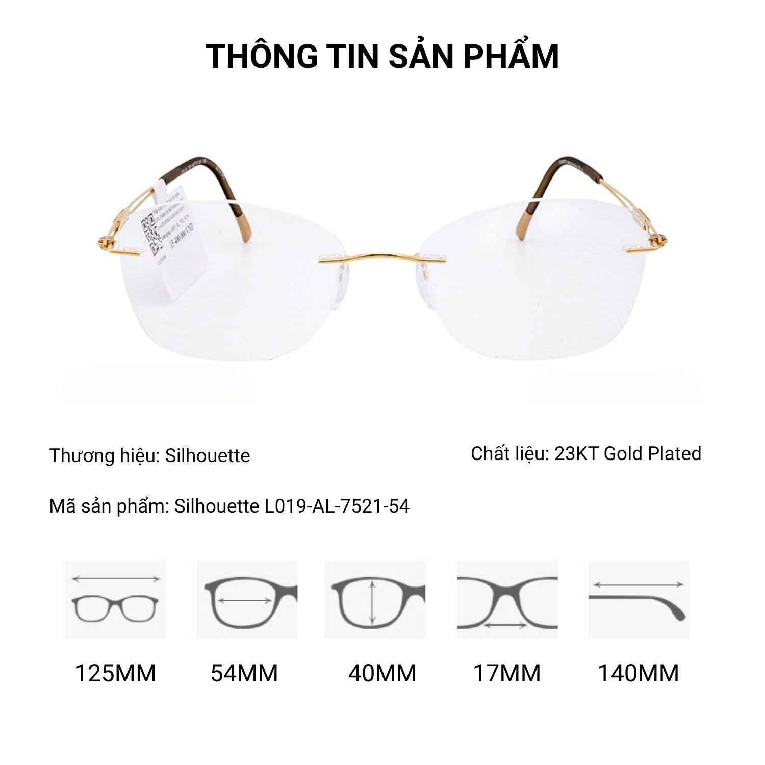 Silhouette L019AL Mạ Vàng 23KT Gold Plated Kính Không Gọng – Tem Chính Hãng 101