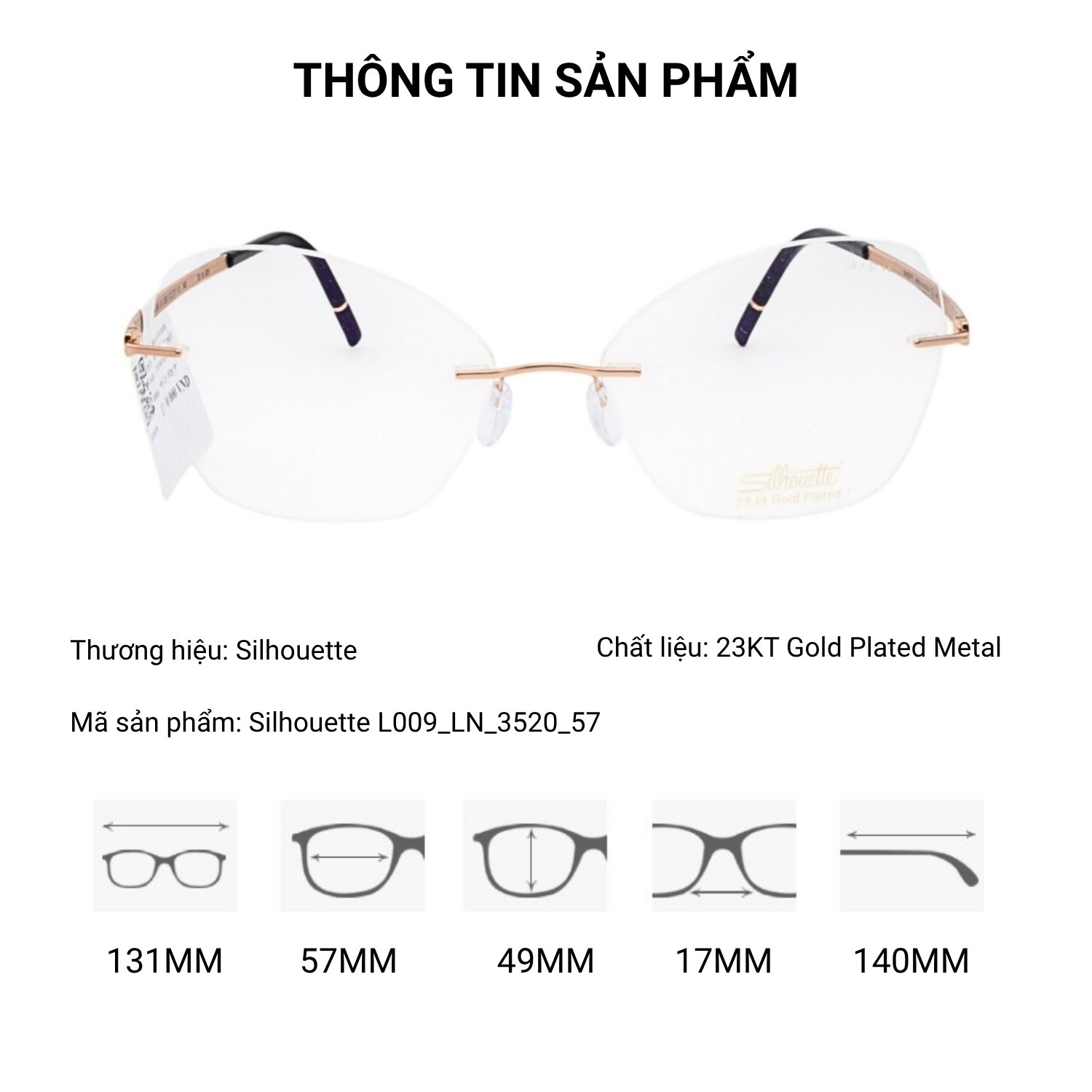 Silhouette Momentum Aurum L009LN Mạ Vàng 23KT Kính Không Gọng – Tem Chính Hãng 101